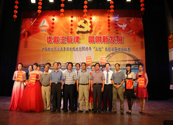 廣西新發展交通集團公司機關一曲激情飛揚的合唱《我的祖國》拉開了紅歌比賽序幕。當晚,來自集團公司機關及其各直屬單位的共10個參賽隊用嘹亮的歌聲激情演唱,一曲曲紅歌振奮人心、鼓舞士氣、催人奮進。經過激烈角逐,廣西路橋建設有限公司以一曲四聲部深情合唱《太陽最紅,毛主席最親》勇奪紅歌比賽一等獎,廣西公路橋梁工程總公司放歌的《江山》和廣西航務工程處的大合唱《保衛黃河》同獲二等獎,來自廣西交通科學研究院的《年輕的朋友來相會》、廣西交通物資總公司的《我和我的祖國》及廣西中路交通建設總公司的《祖國不會忘記我》榮獲三等獎。