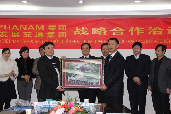 12日,集團公司與越南Alphanam 集團舉行戰略合作洽談會,集團公司總經理李定倫、副總經理劉明洪及集團公司越南市場調研開發投資小組成員,Alphanam 集團董事長阮俊海及隨行人員共同出席了洽談會,劉明洪副總經理主持會議。會上,雙方就有關項目進行了詳細深入的洽談,達成了初步的合作框架。會后,阮俊海先生向集團公司贈送了象征友誼、合作的禮物。