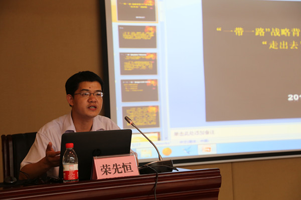 榮博士從戰略內涵、歷史緣由、時代背景、框架思路等方面詳細解讀和分析了“一帶一路”戰略構想,并結合廣西發展優勢及集團公司發展需要進行了針對性、科學性、前瞻性地輔導。榮博士指出,當前“一帶一路”戰略的實施,為中國企業“走出去”創造出了難得的歷史機遇,是中國未來10年的重大政策紅利,必將加速中國企業“走出去”步伐。新發展集團作為廣西的國有大型企業,要善于把握新的經濟發展形勢,主動融入“一帶一路”國家戰略,抓住“一帶一路”建設新重點,利用廣西的先行合作平臺優勢,積極與其他企業合作“走出去”,以海陸互通重點通道工程為突破,建立靈活機制,多元化投資,在“一帶一路”大聯通網絡建設中有所作為。