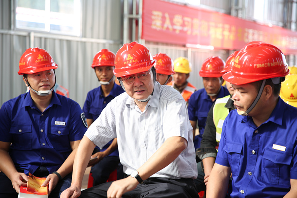 在作業(yè)一線,王躍飛主席結(jié)合企業(yè)實際情況,與現(xiàn)場員工及作業(yè)工人深入淺出的講解黨的十九大精神,讓黨的十九大精神在基層落地生根。王躍飛指出,黨的十九大對中華民族乃至每個老百姓的命運十分重要、關(guān)鍵,會議選舉出了以習(xí)近平總書記為核心的領(lǐng)導(dǎo)集體,確定了習(xí)近平新時代中國特色社會主義思想,確定了新的發(fā)展規(guī)劃。王躍飛表示,當前我國的奮斗目標是建設(shè)成為富強、民主、文明、和諧、美麗的社會主義現(xiàn)代化強國,我國的社會主要矛盾也已經(jīng)轉(zhuǎn)化為人民日益增長的美好生活需要和不平衡不充分的發(fā)展之間的矛盾,我們要對這些新論斷,新理念有清醒的認識。在宣講過程中,王躍飛用通俗易懂的語言對黨的十九大主要內(nèi)容進行了精彩的講解。