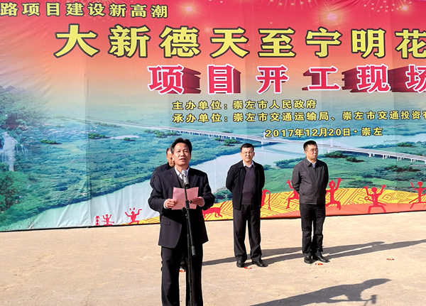 12月20日,崇左市大新德天至寧明花山公路舉行開工儀式,集團公司黨委書記、董事長朱堅和,集團公司黨委副書記、副董事長、總經理唐咸秋,路橋工程集團及設計院有限公司相關負責人參加了開工儀式。
