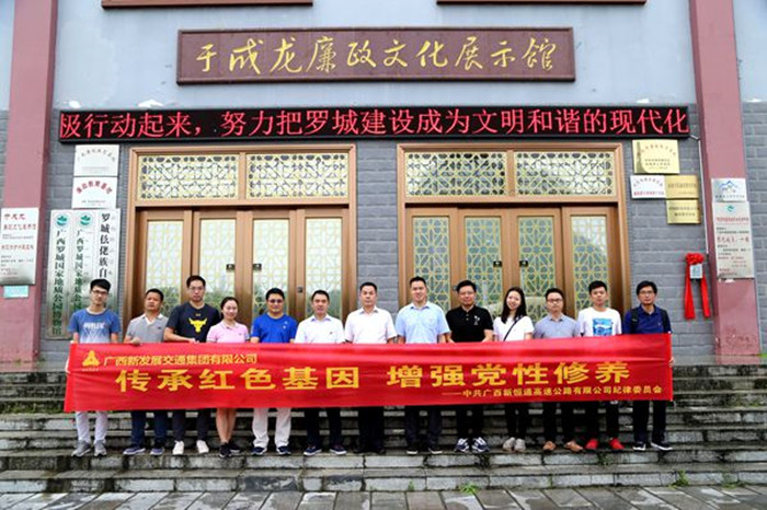 集團公司紀(jì)委書記韋慶和、公司領(lǐng)導(dǎo)賴水平,率隊參觀了羅城仫佬族自治縣于成龍廉政文化展示館、重走于成龍入羅城古道。全體人員一起認(rèn)真聆聽于成龍故事,感受于成龍廉潔自律、克己為民的清廉精神。