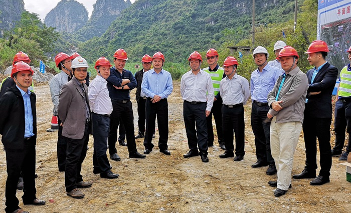 11月13日,柳州經(jīng)合山至南寧高速公路(即新柳南高速公路)項目建設(shè)指揮部暨新柳南公司、公司黨委在上林縣舉行揭牌儀式,標志著項目建設(shè)邁入了全面實施的新階段。集團公司領(lǐng)導(dǎo)高新、唐咸秋等參加揭牌儀式,并深入施工現(xiàn)場調(diào)研指導(dǎo)工作。