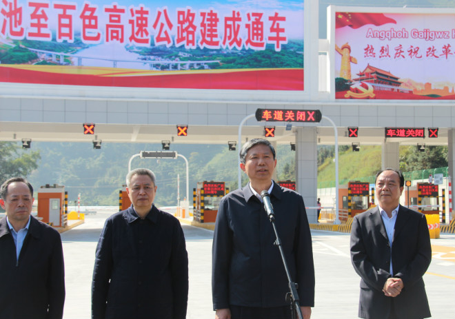 11月28日,河池至百色高速公路正式建成通車,自治區(qū)副主席費(fèi)志榮到場(chǎng)祝賀并進(jìn)行致辭。