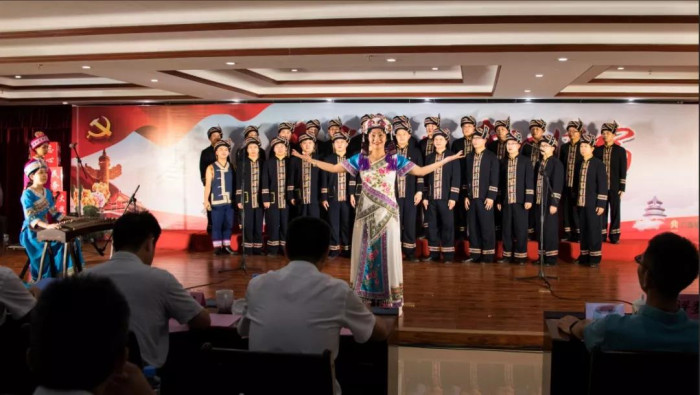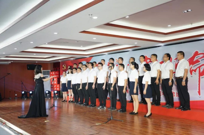 來自新發展集團本部,各直屬單位、指揮部的11支代表隊歡聚一堂,用滿腔熱情唱響紅色旋律,歌頌黨的恩情,獻禮建黨98華誕。其中,新發展集團本部吟唱余音渺渺的《愛國歌》,用現代舞和朗誦的形式表現個人與祖國血脈相連、風雨同當的情愫,最終拔得頭籌;欽北改擴建指揮部、人防設計院緊緊結合“不忘初心、牢記使命”主題教育的根本遵循,分別合唱《不忘初心》《走向復興》兩首曲目,并做到演唱連貫、節奏鮮明、情緒準確,分別獲得二等獎;大浦公司、融河高速指揮部、鐘昭高速指揮部則在確保歌曲的完整度、準確度、協調度的同時,在服裝、隊形、伴奏上別出心裁,最終獲得三等獎;其余隊伍也各具特色,使所選紅歌綻放出燦爛的光彩,展現出新發展集團奮斗拼搏的精神面貌。