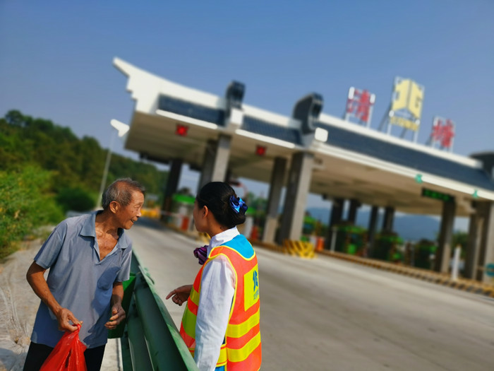 圖2:10月3日上午,當(dāng)班收費(fèi)員熱心幫助迷路老人返家