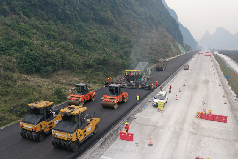 自2月10日起,賀州至巴馬高速公路、大塘至浦北高速公路、吳圩至隆安高速公路、融水至河池高速公路等多個(gè)自治區(qū)重大項(xiàng)目相繼恢復(fù)施工生產(chǎn),做到了讓施工現(xiàn)場“活”起來、設(shè)備“動(dòng)”起來、氣氛“熱”起來,形成了大干快上的良好局面。